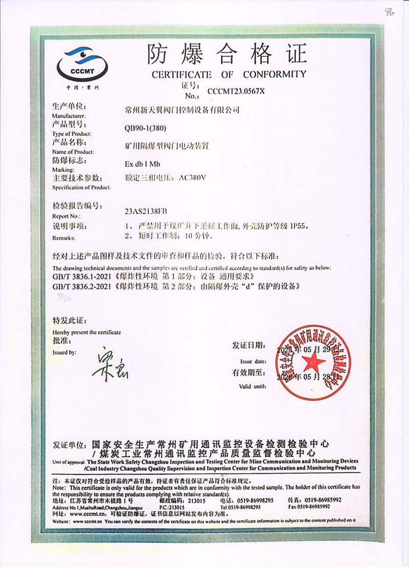 隔爆型QB QBZ QBT 220380中國國家強制性產品認證證書107.1